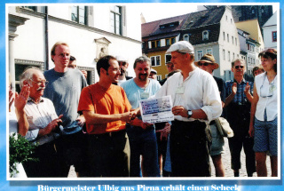 Velocipediade 2002 Bürgermeister erhält 2500 Euro-Scheck Foto © Euhus