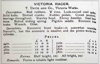 Quelle: "Bicycle Handbook, 1878", Victoria Racer. T. Davis and Co., Victoria Works