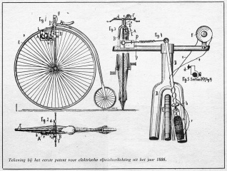 Illustration in an article about the history of bicycle lighting, journal “De Nederlandse Rijwielhandel” 1959 Abb 4:(aus: Aufsatz: Richard Webers Beitrag zur Entwicklung elektrischer Fahrradlichtanlagen mit Dynamo / vom 22.8.2018)