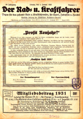 Cover. Der Rad-und Kraftfahrer, Jg. 40 Nr.01 (1.1.1931)