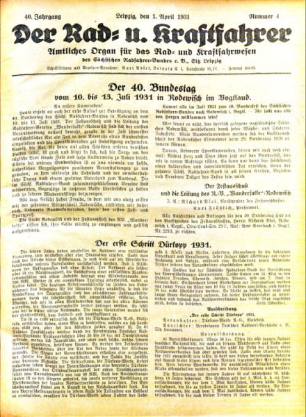 Cover. Der Rad-und Kraftfahrer, Jg. 40 Nr.04 (1.4.1931)