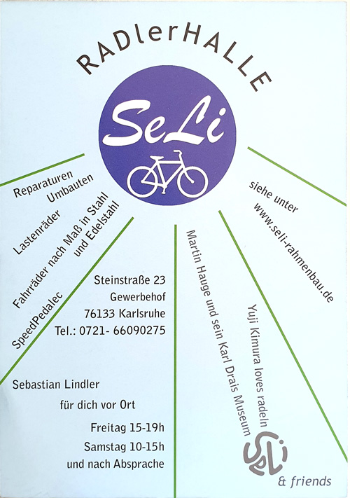 - (Herunterladen) 20190506 seli-Rahmenbau-Werbekarte.jpg . . 900 × 617 . . 339 KB . . Frau Velobuch . . 13:50, 6. Mai 2019